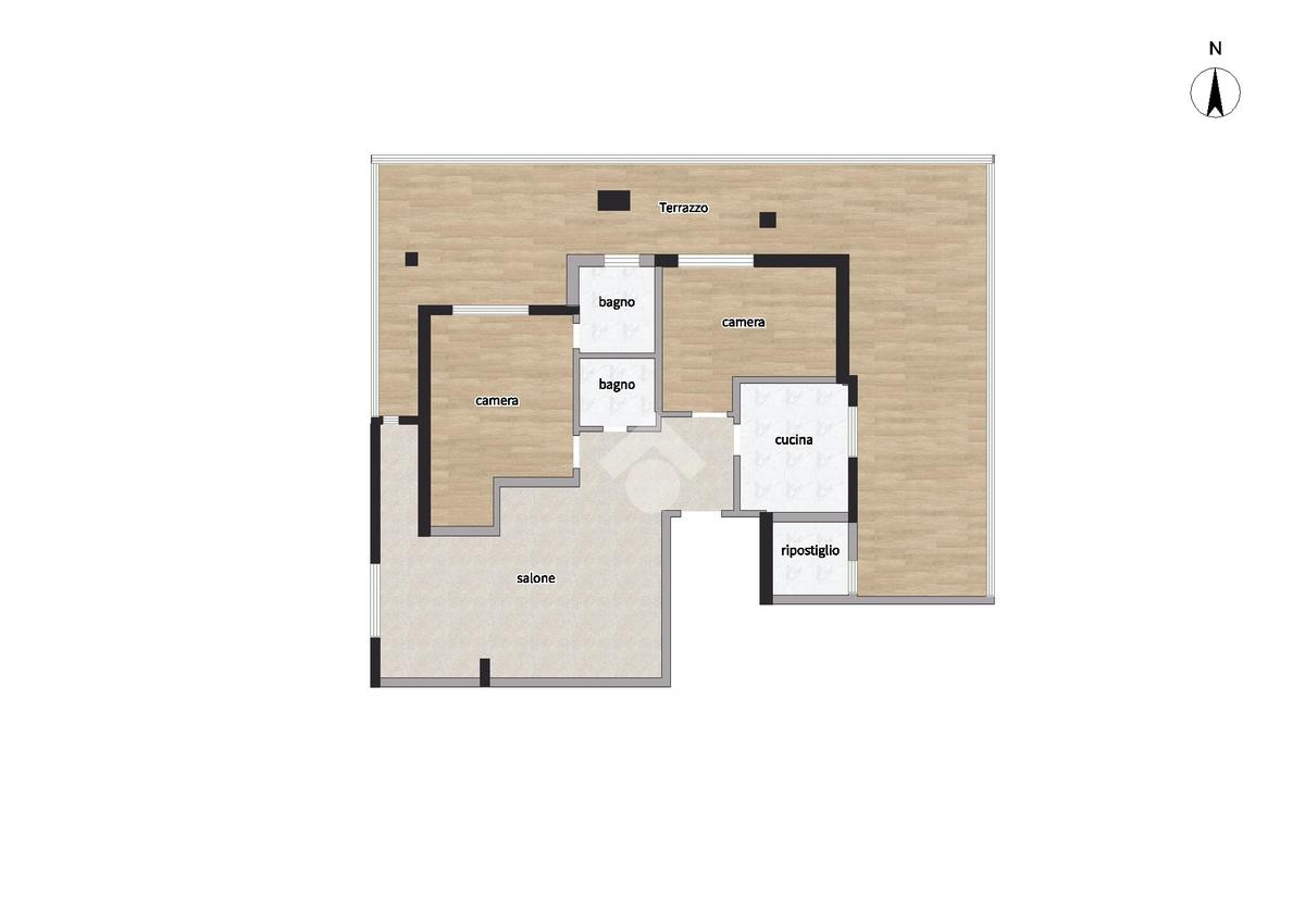 La vera gemma di questa proprietà è il magnifico terrazzo di 64 mq ca con esposizione Sud-Est e Nord, che regala una vista aperta sul parco dei fusco.